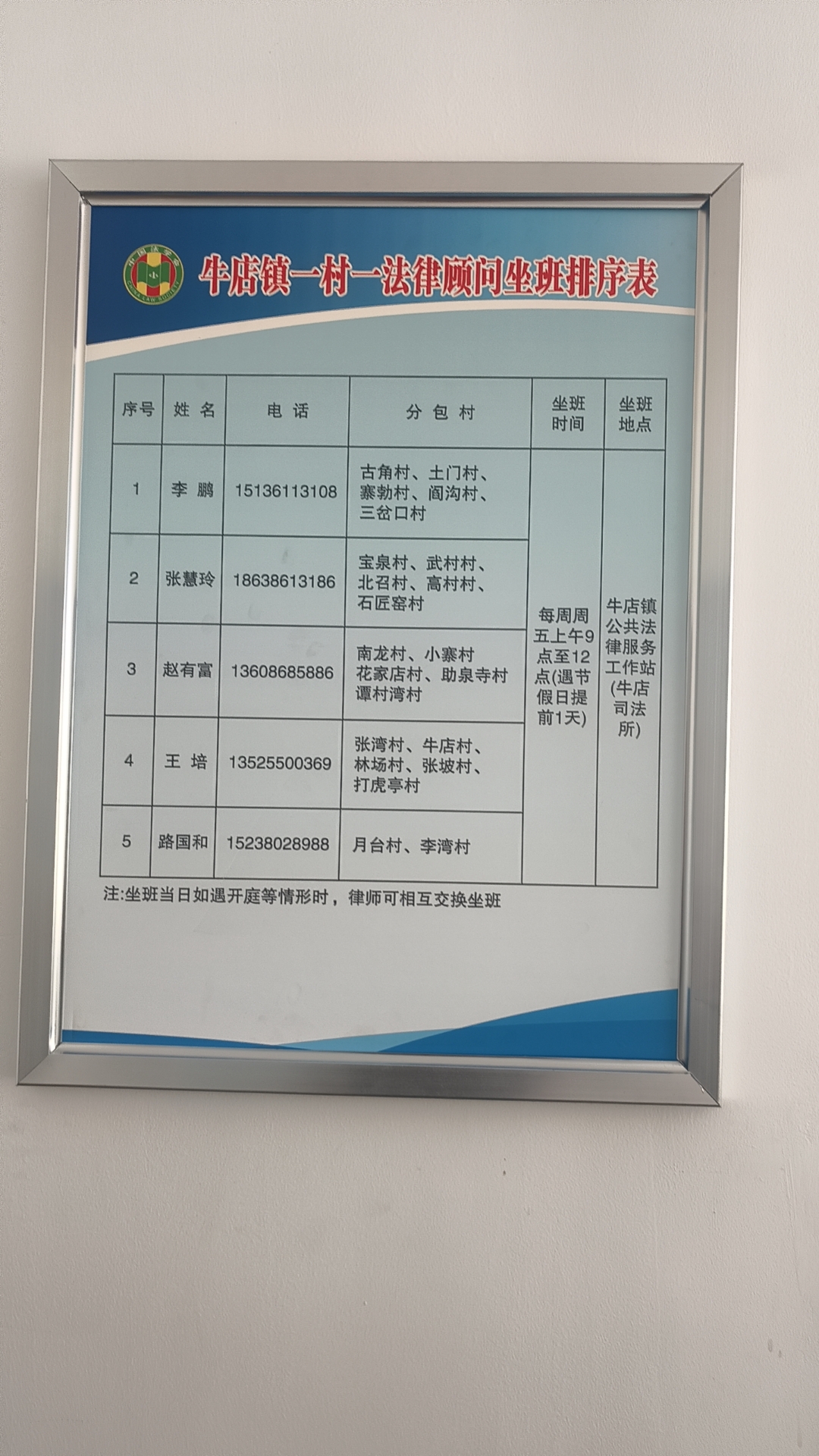 办公地点:牛店镇法律服务工作站